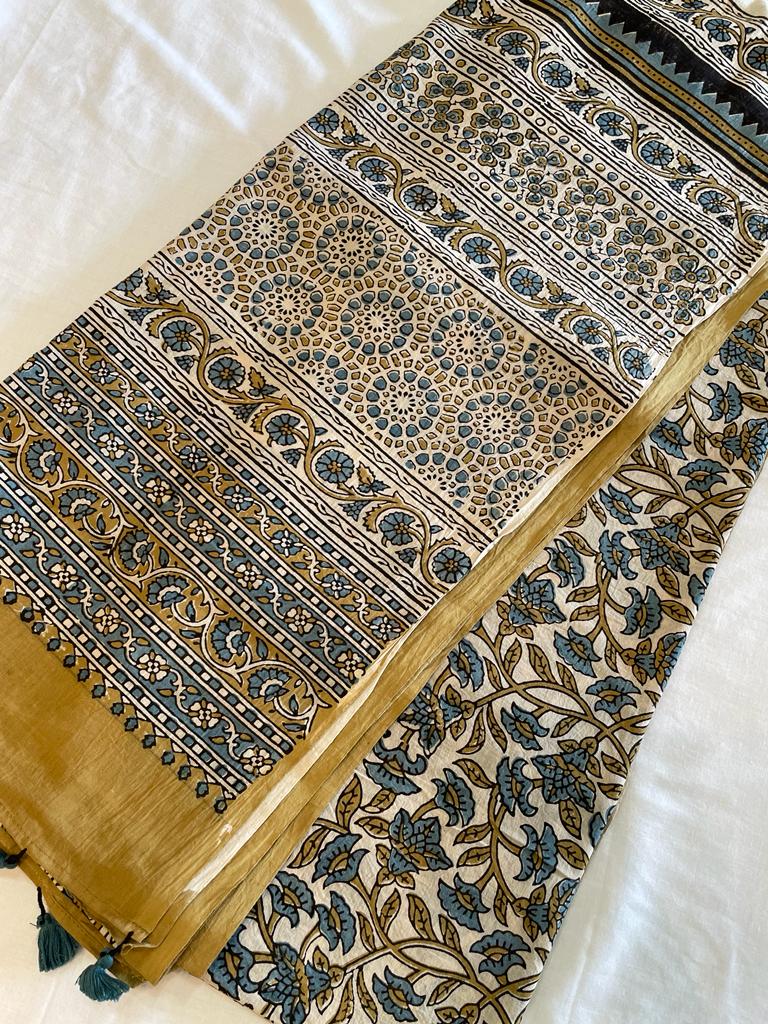 Ajrakh Hand Block Pure Cotton Saree
