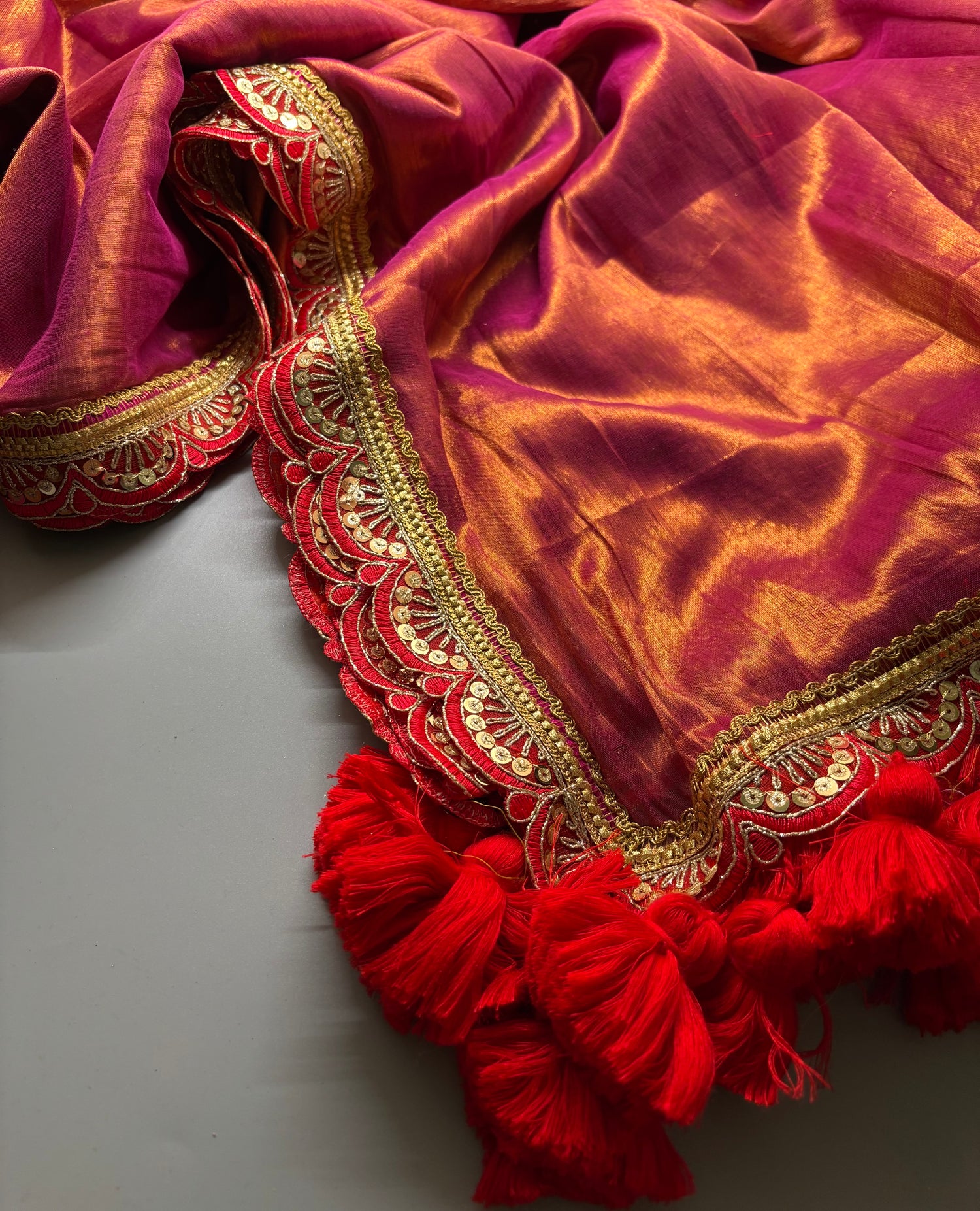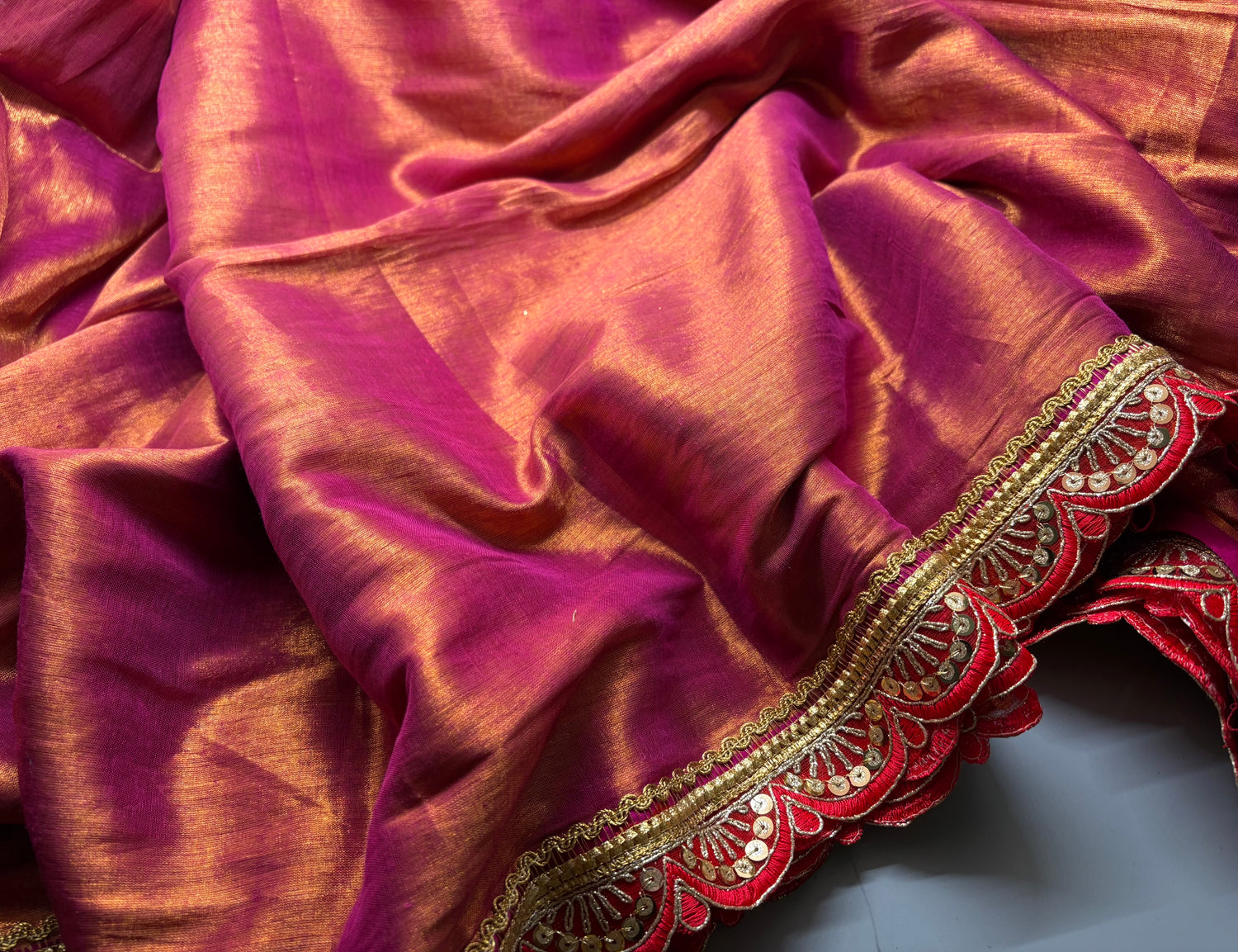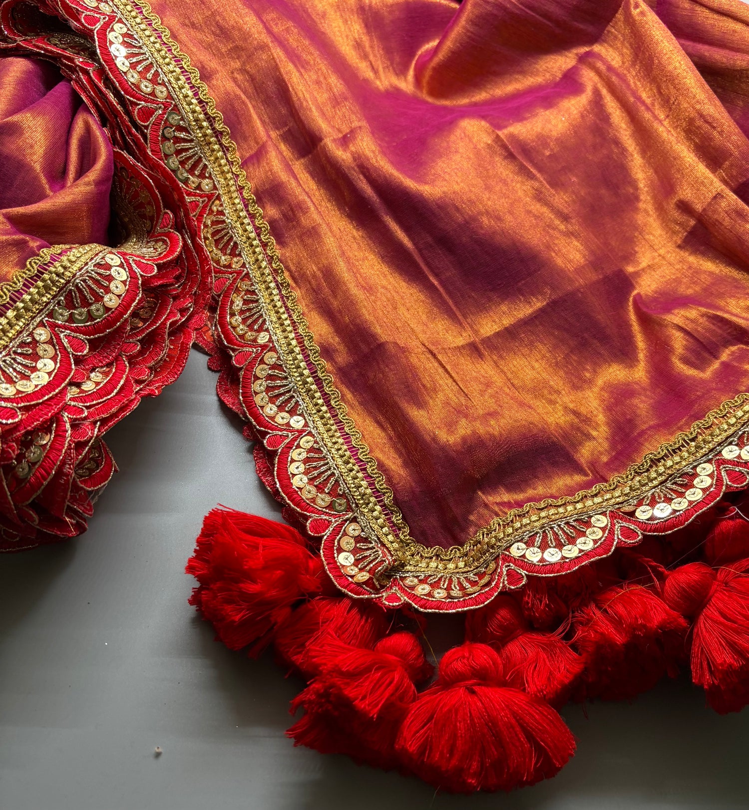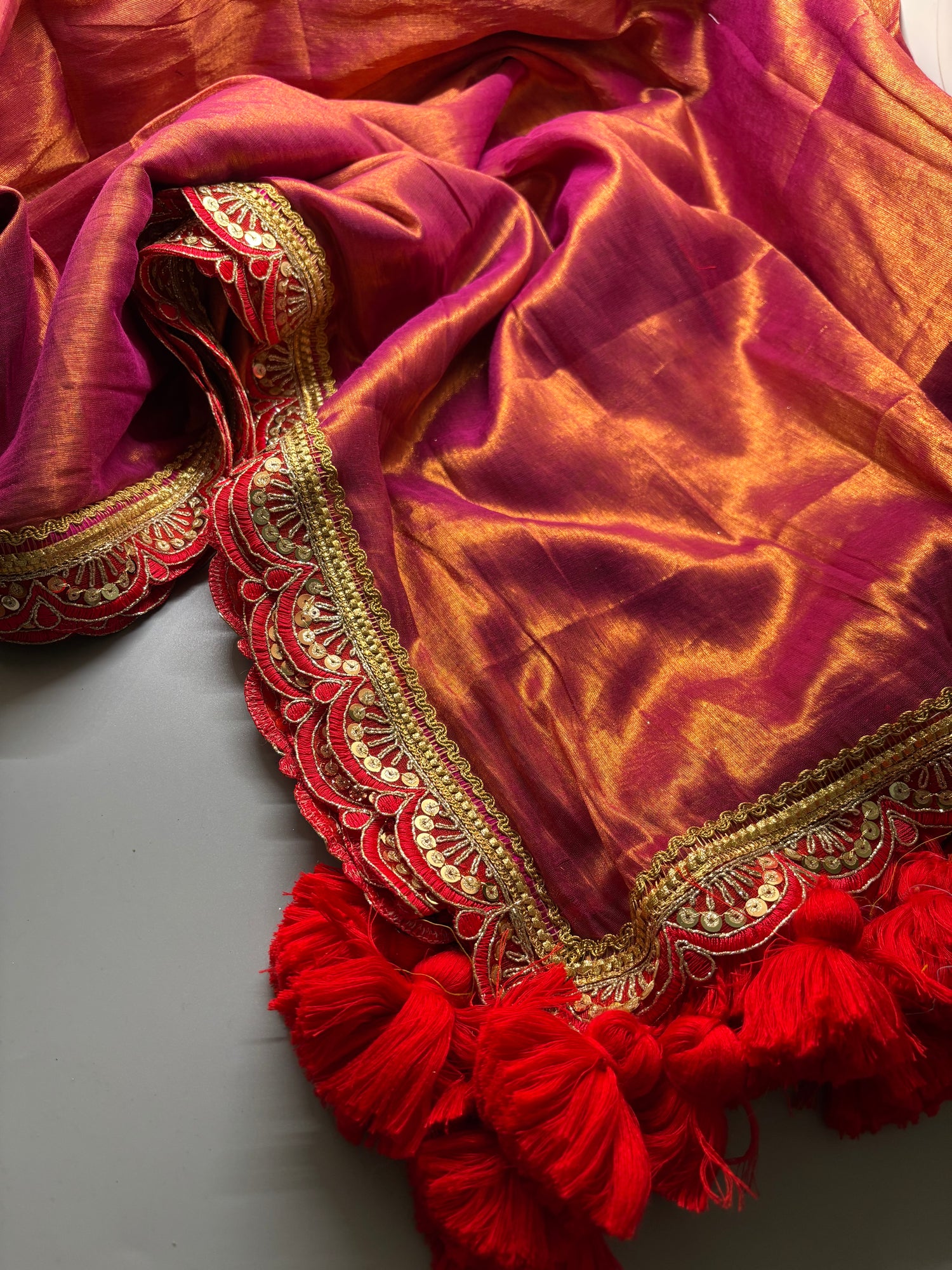 - Product Colour : Metallic Orange/Pink dual tone with Red Lace Border