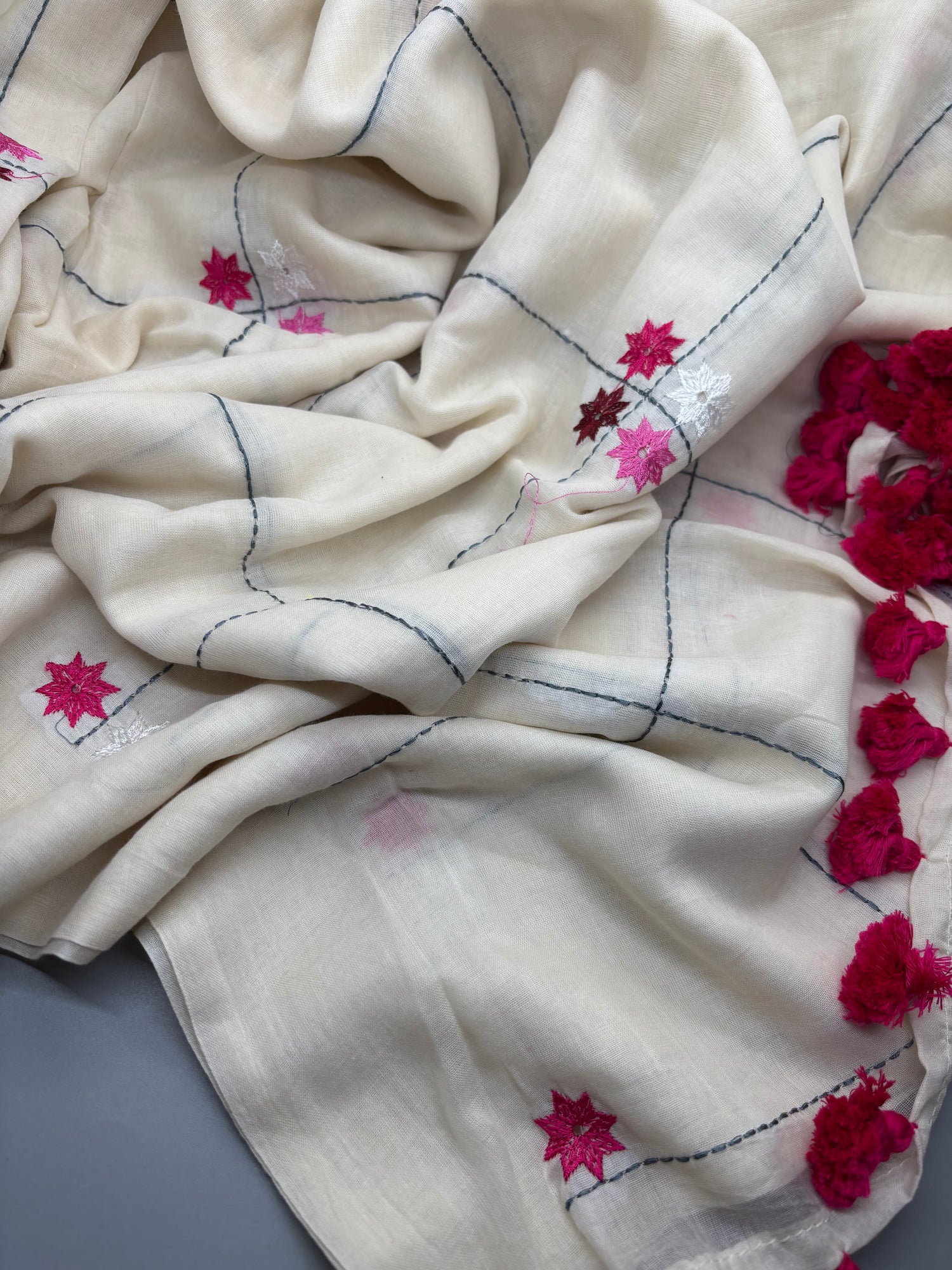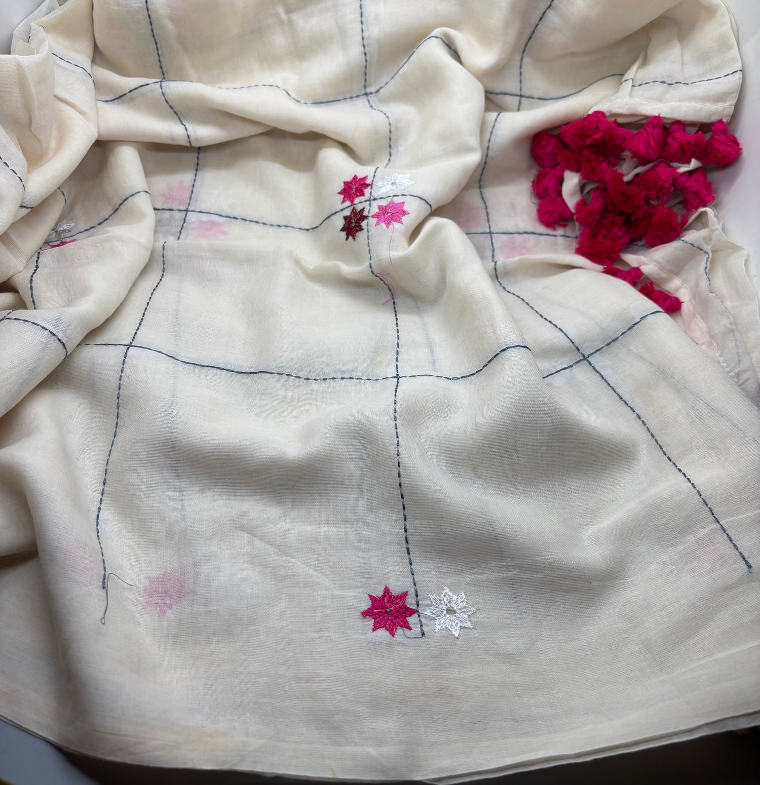 - Product Colour : Off White with flower embroidery and hand stitch chequers.