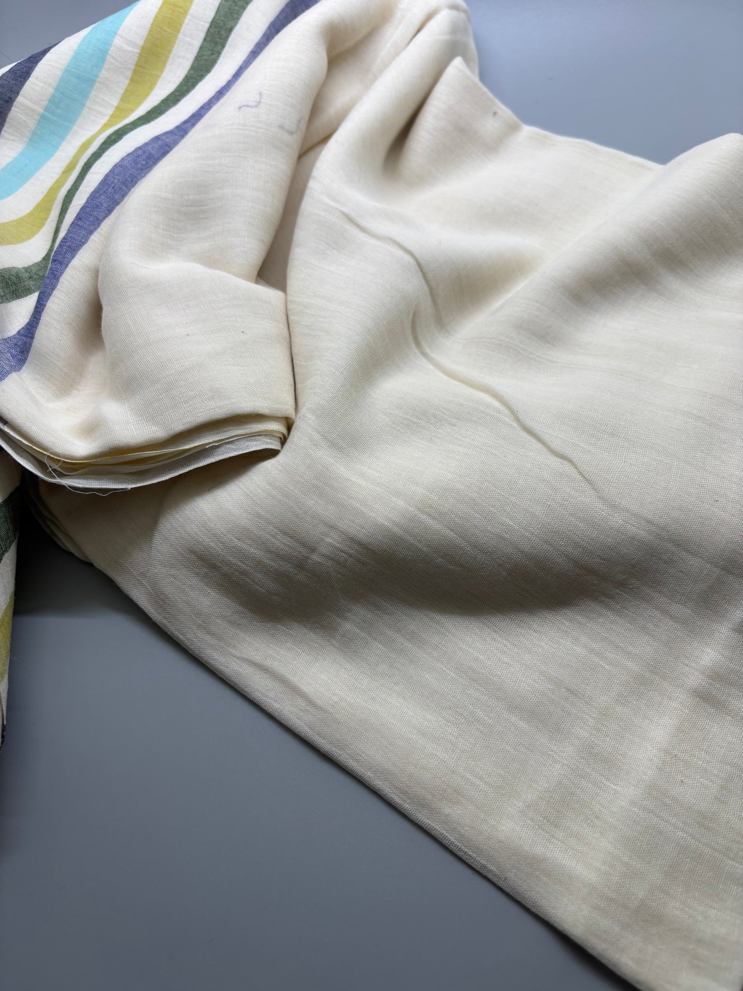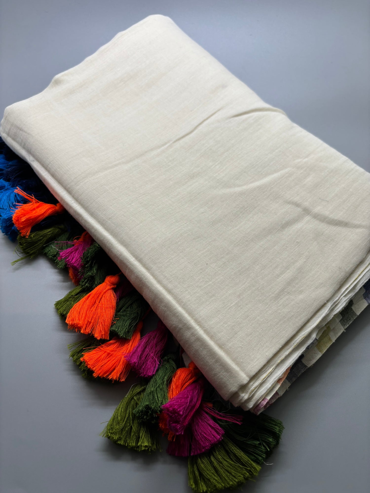 - Product Colour : Body - Plain Off White, Pallu - Colourful Stripes