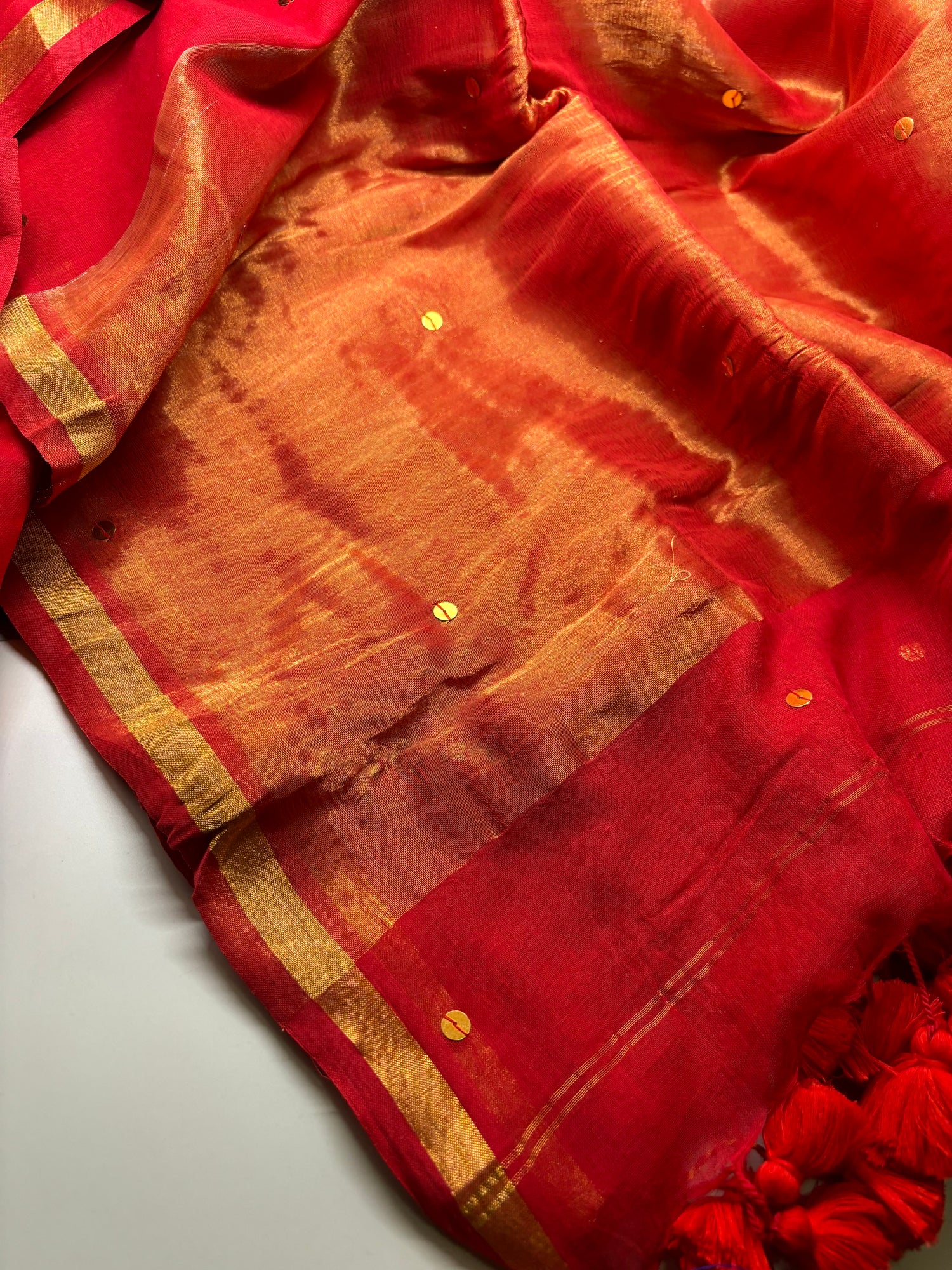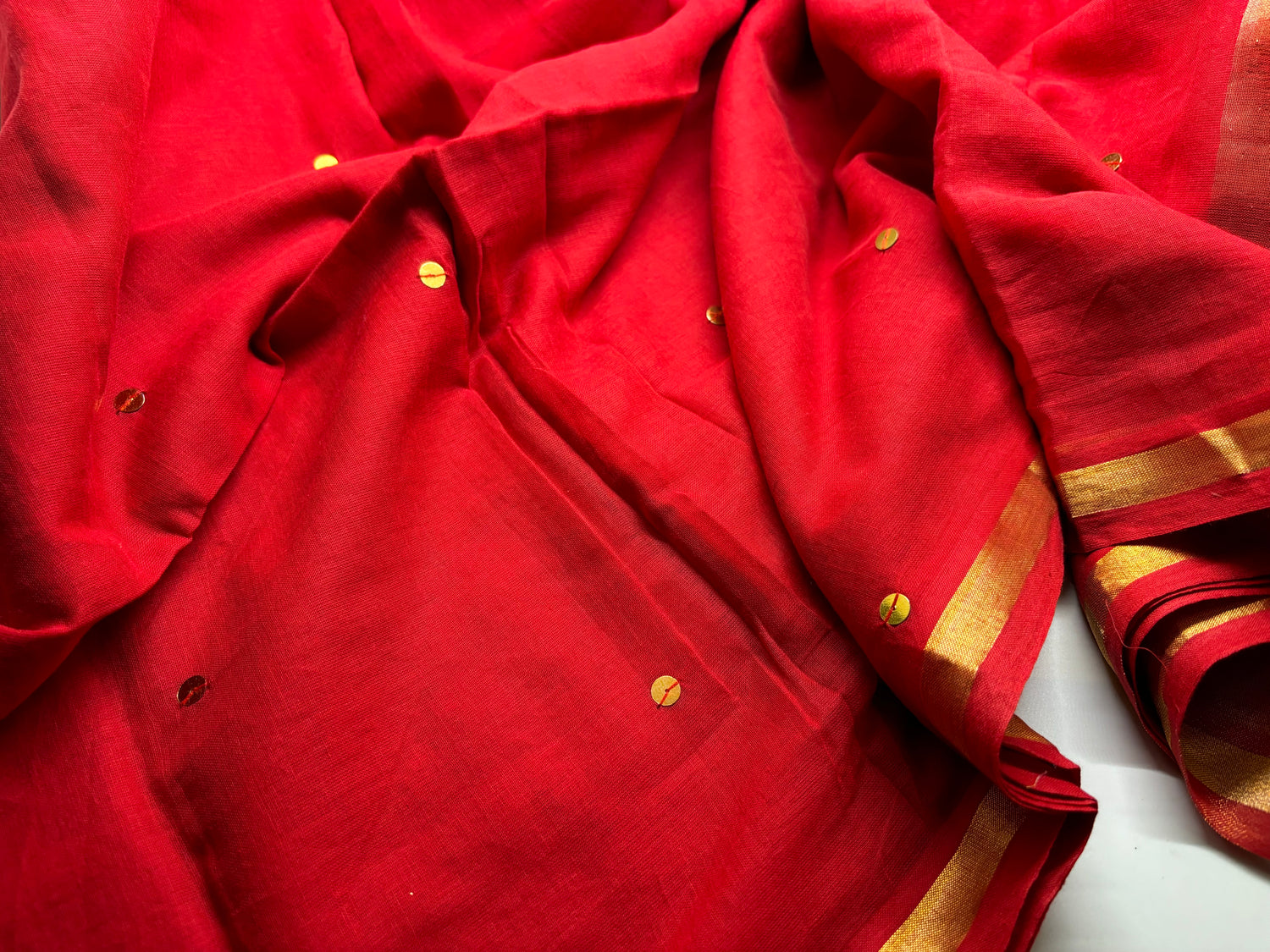 - Product Colour : Red with sequin work.Tested Zari work at Pallu