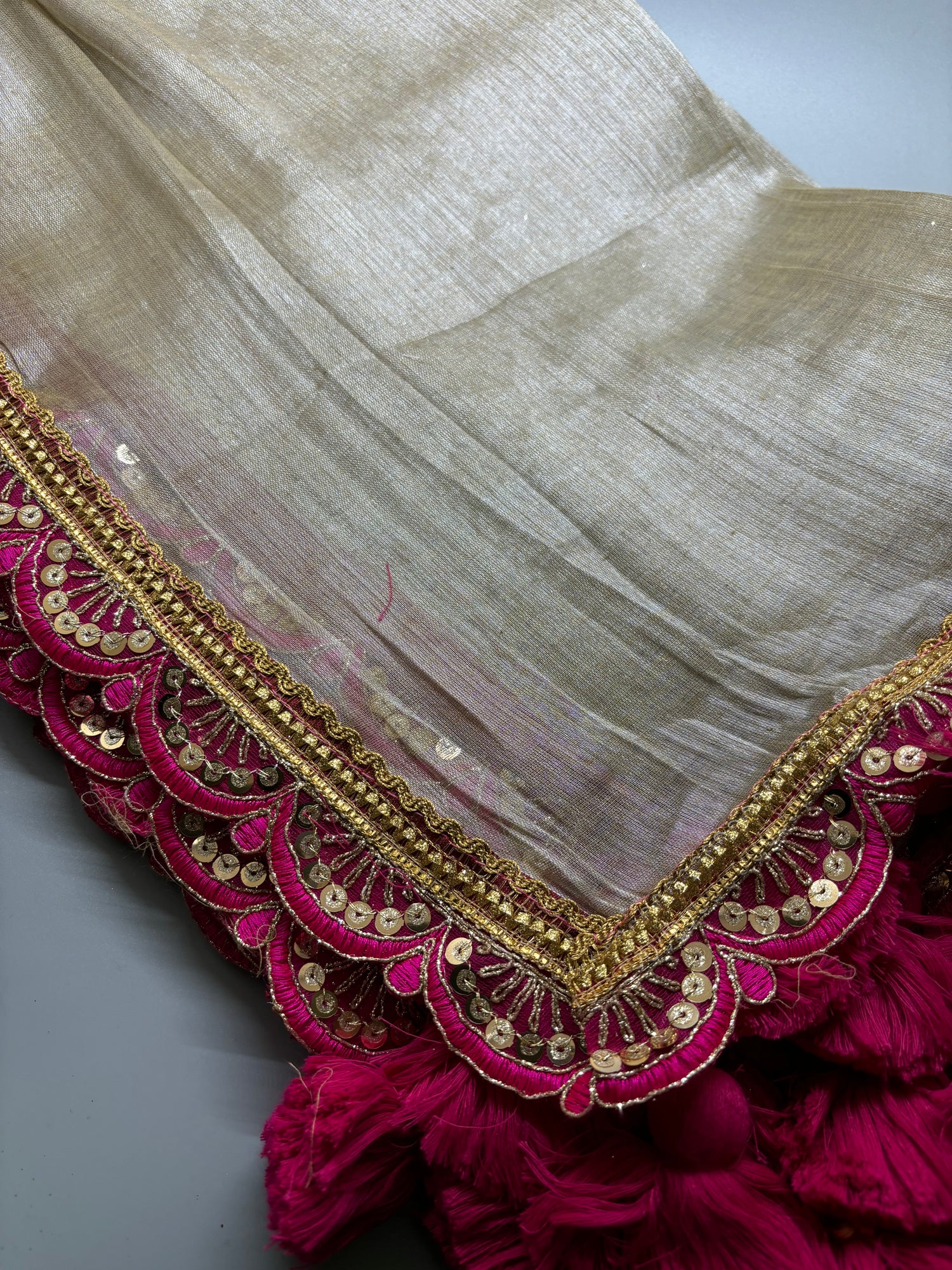 - Product Colour : Metallic Silver with Pink Lace Border