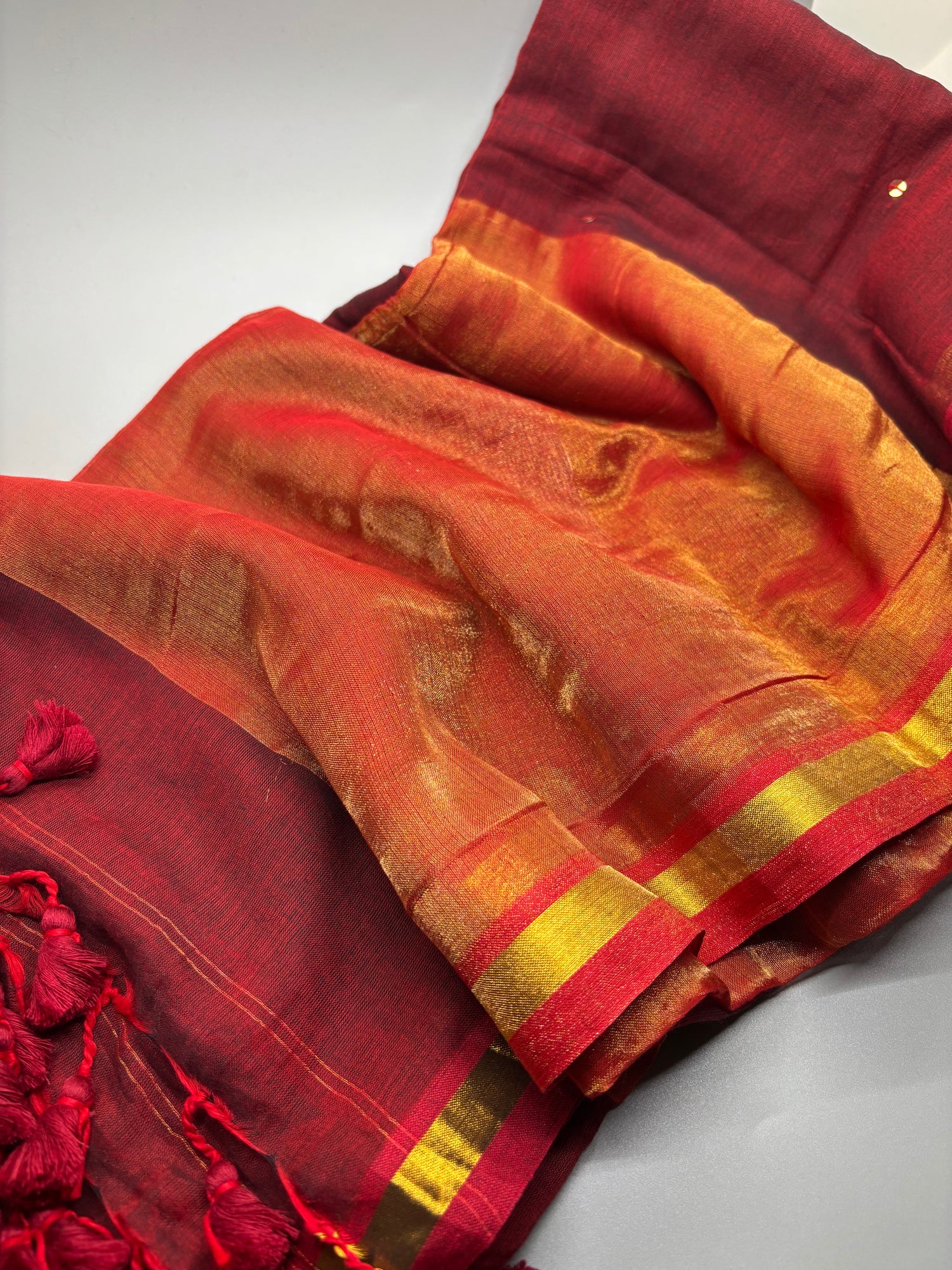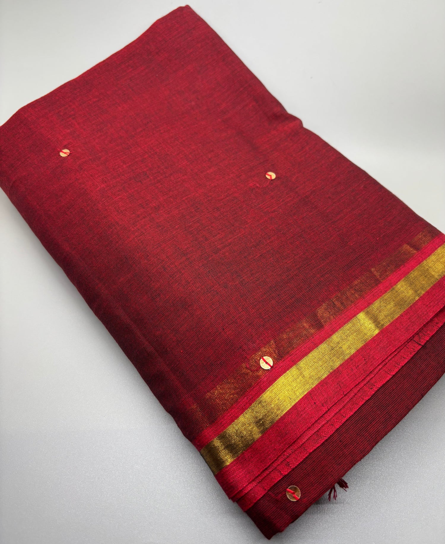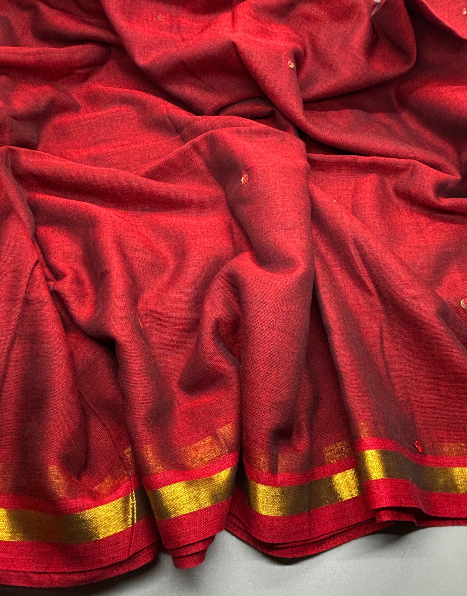 - Product Colour : Dark Red with sequins and zari pallu and border