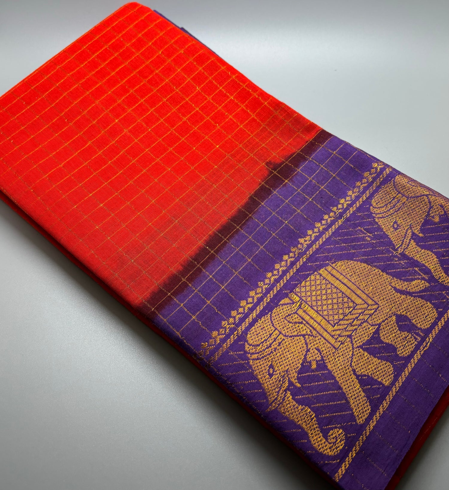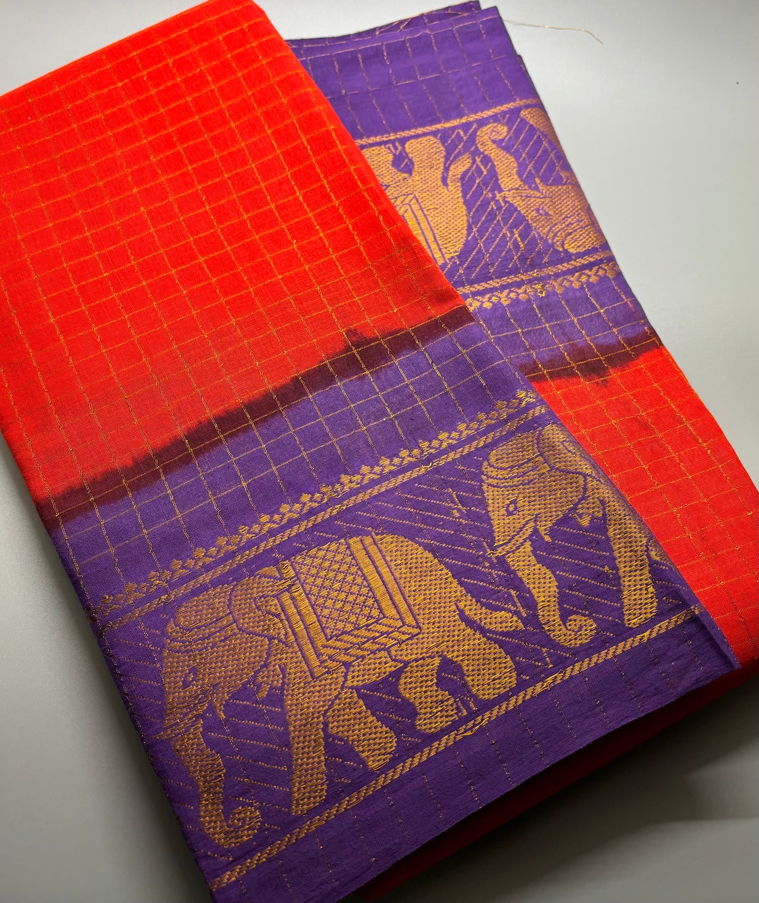 - Sungudi sarees are dyed and dried in sand under sunlight. Colour and sand smudges are quite common in Sungudi Sarees. These are not considered as damages.