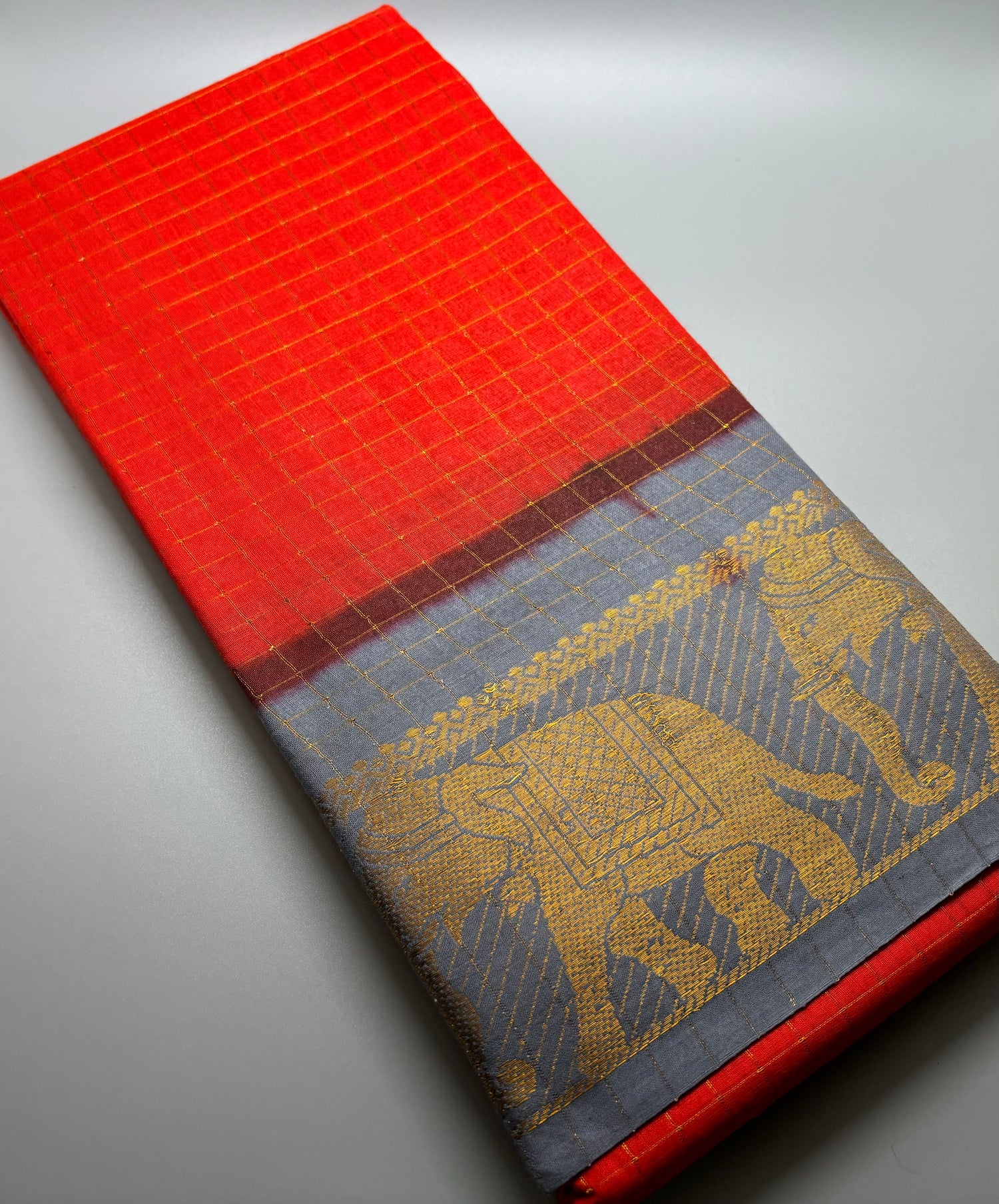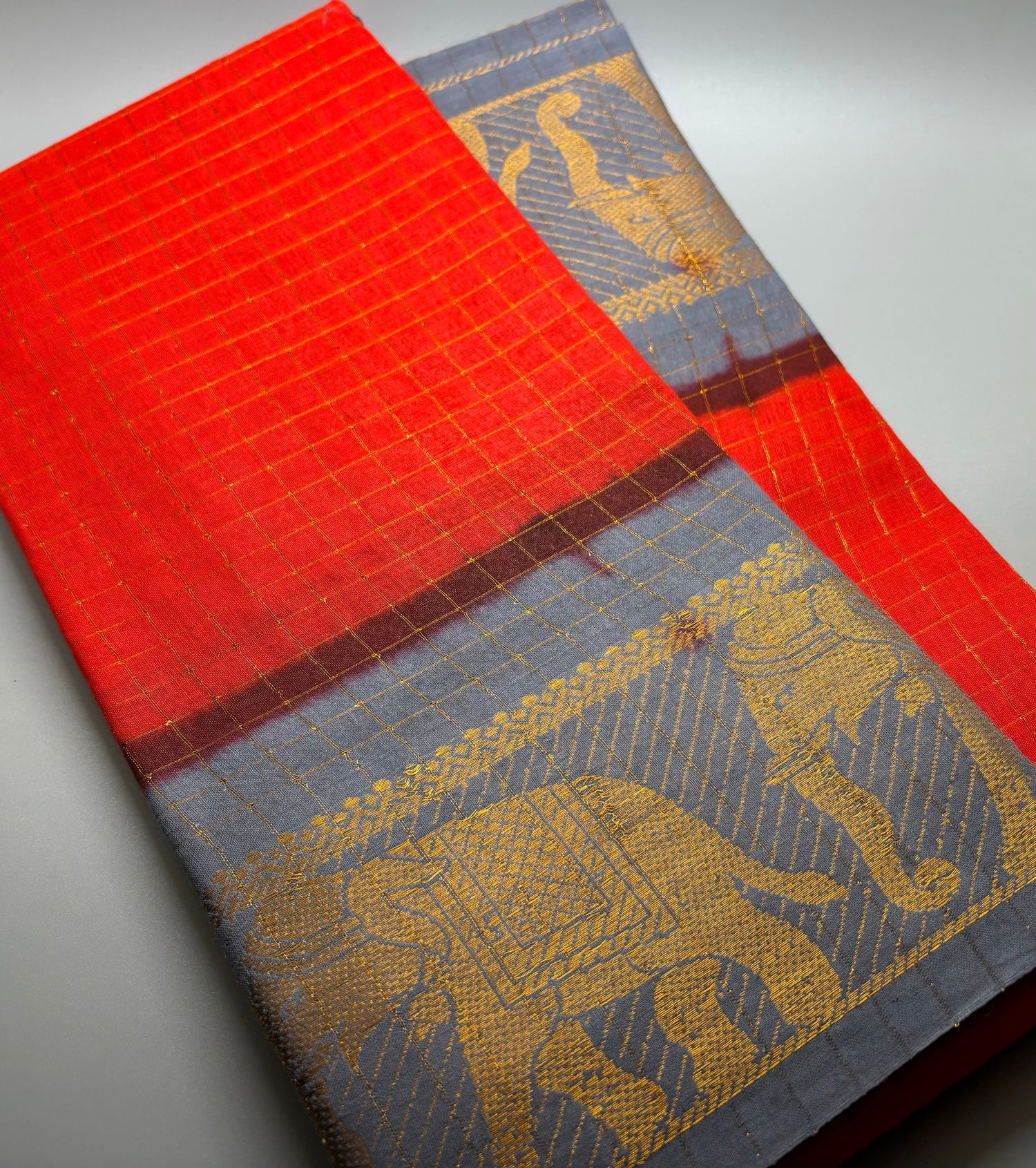 - Sungudi sarees are dyed and dried in sand under sunlight. Colour and sand smudges are quite common in Sungudi Sarees. These are not considered as damages.