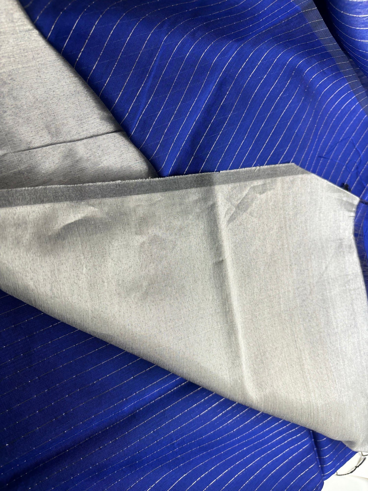 - Product Colour : Blue with vertical Silver Stripes all over body and Pallu