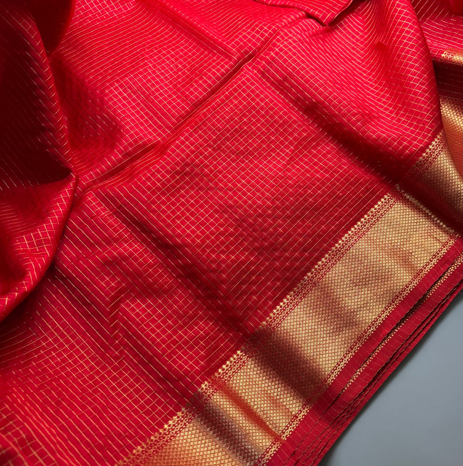- Product Colour : Vermilion Red zari chequered/checks