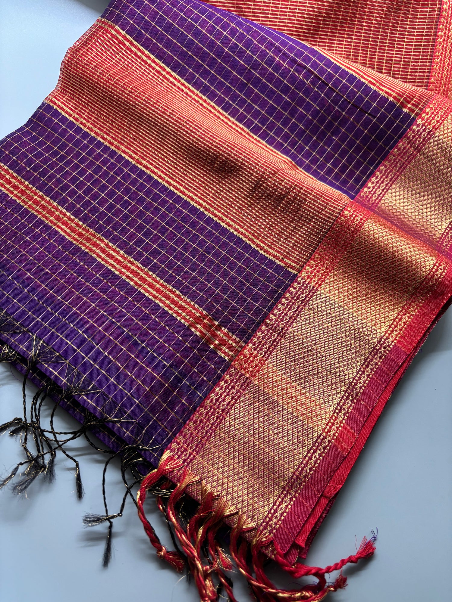 - Product Colour : Purple(Body), Red(Border) zari chequered/checks