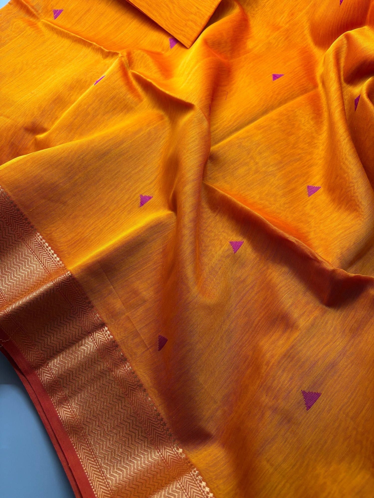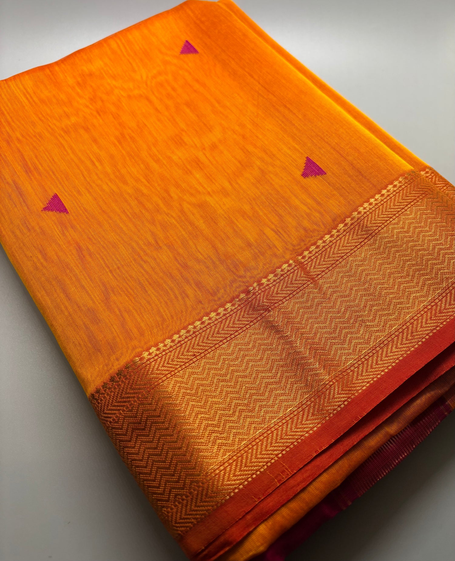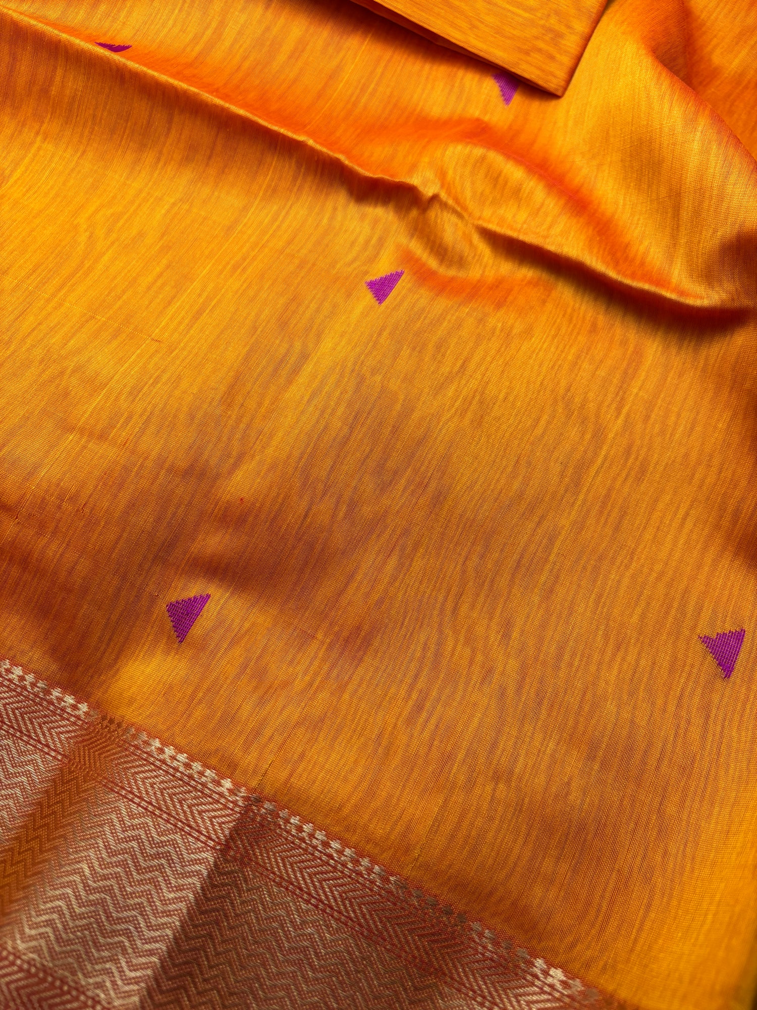 - Product Colour : Saffron Orange with Pink Triangle Motif(Samosa Butti)