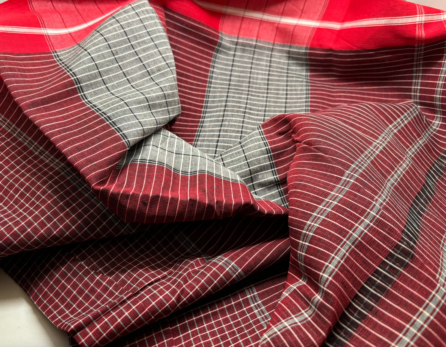 - This traditional saree has been revived with special features like the reversible nature of the saree and the specially engineered border which is already coarse and does not require additional fall or beading to be done, making this a ready to drape saree.