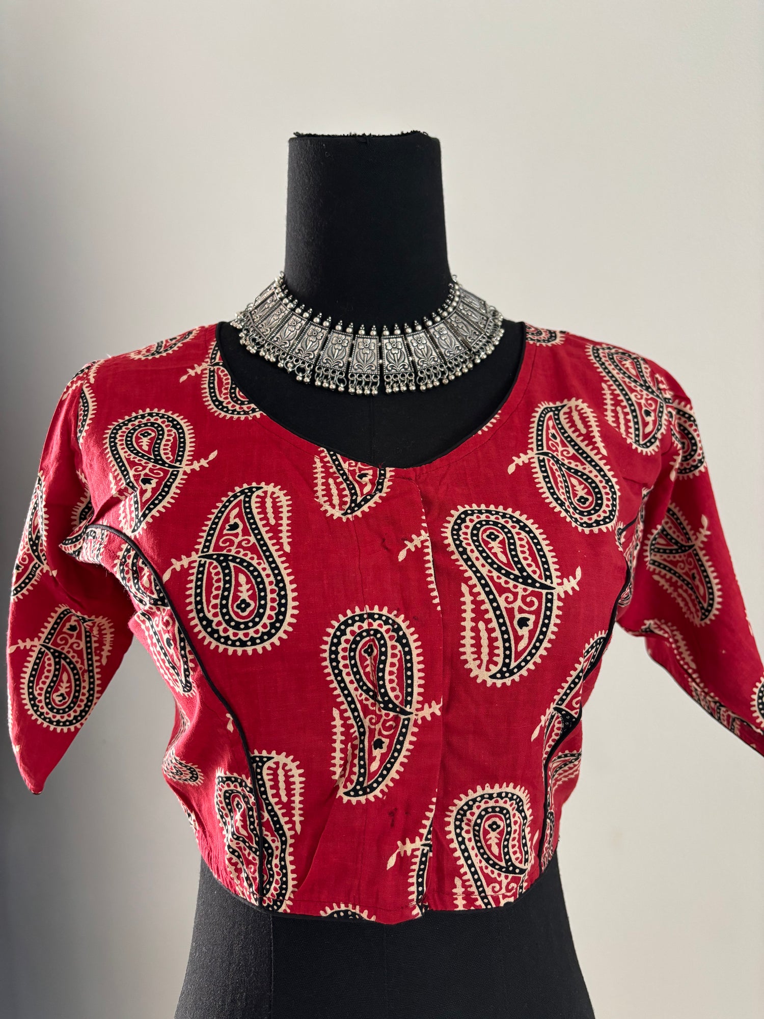 • Readymade Ajrakh print saree blouse